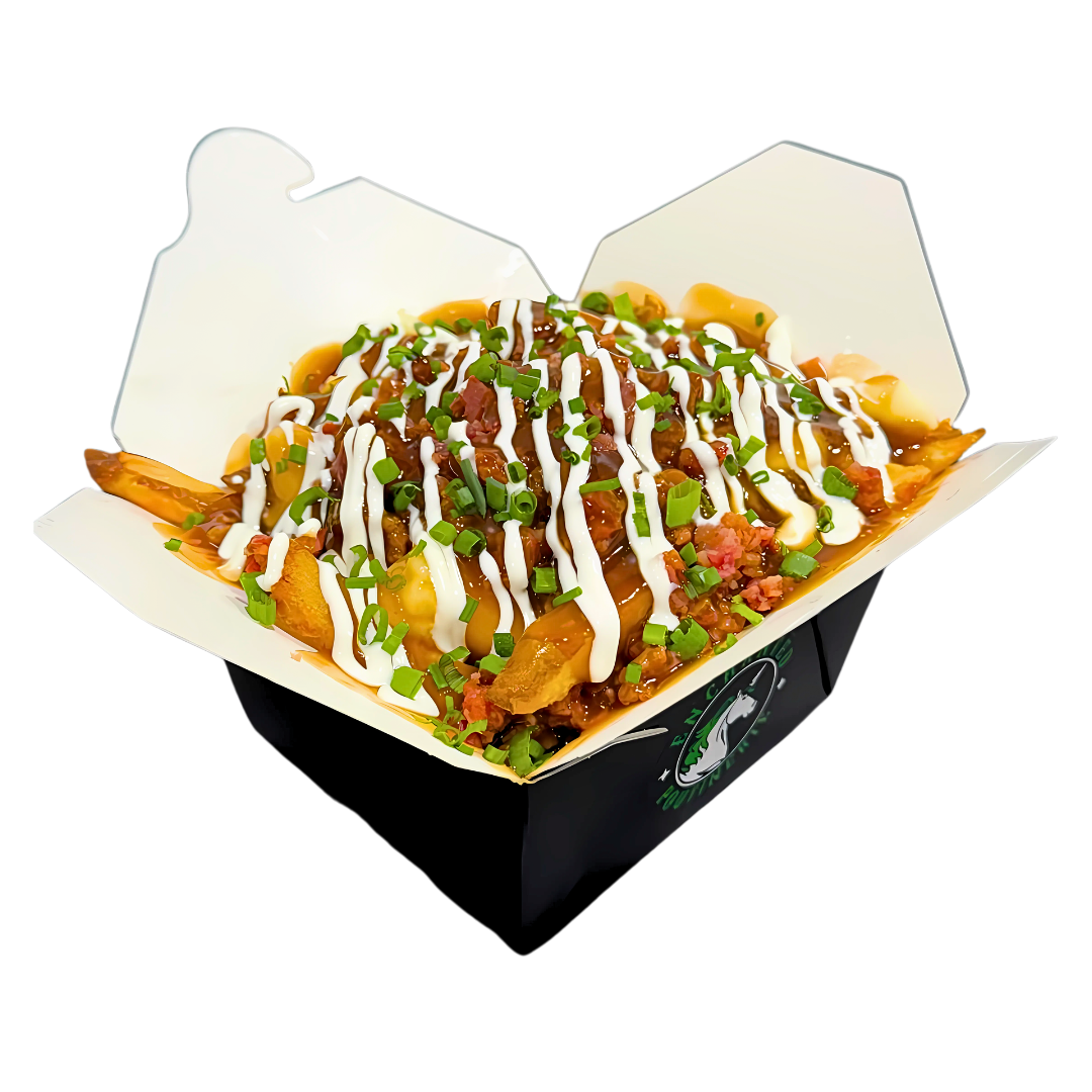 ENCHANTED POUTINERIE ✦ ENCHANTED POUTINERIE ✦ ENCHANTED POUTINERIE ✦ GLOBAL FUSION POUTINE maple bacon Poutine Fries, Curds, Gravy, Bacon, Maple Syrup, Sour Cream, Chives.